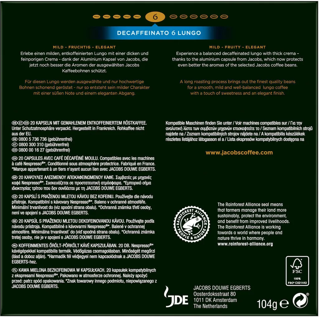 - 5 x JACOBS Kapseln Decaffeinato 6 Lungo à 20 Nespresso®* kompatible Kaffeekapseln